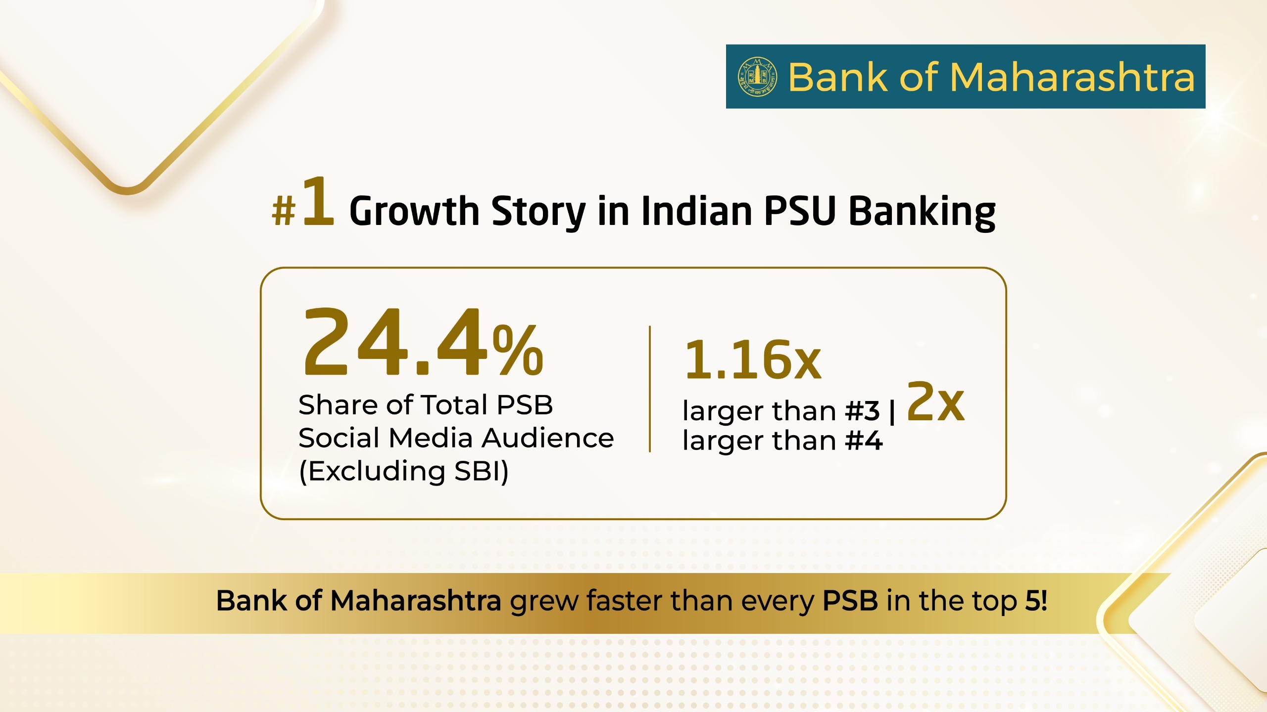 • Achieved second position among Public Sector Banks in total social media followers by September 2025.